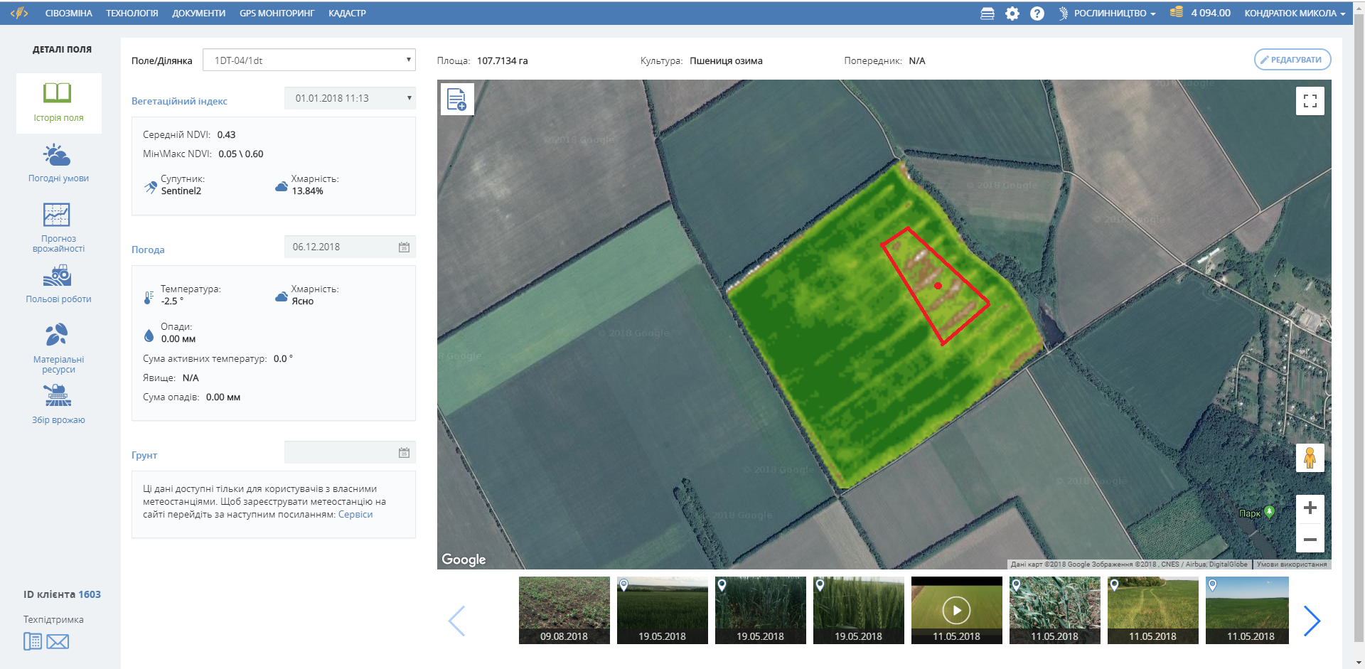 After saving the inspection data, when connected to the Internet, the mobile device will automatically upload photos and GPS coordinates to the Soft.Farm portal and the information will immediately become available to other employees and will be stored in the field history. The mobile application also performs the function of a navigator of fields and problem areas, which were determined using the satellite monitoring and the NDVI index.