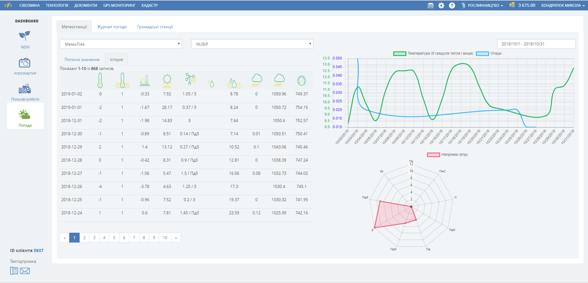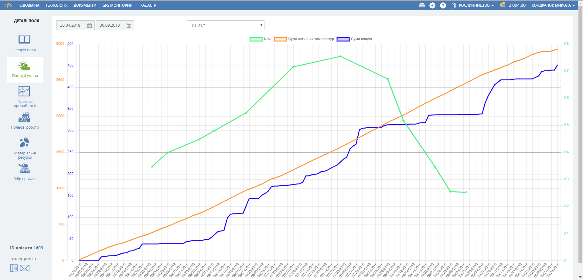 The quality of field works depends on the weather conditions under which they were performed. Any operation, whether it is sowing, fertilization or application of plant protection products, can be ruined by adverse weather conditions, and this is a very large loss of expensive materials and future harvest. However, today satellite data on the temperature and humidity of each land plot are available. For accurate weather forecasting, there is a possibility to install your own meteorological station, which collects data on temperature, air and soil moisture, and many other indicators that allow you to make accurate weather forecasts for the farm fields. The Soft.Farm system has access to satellite data and combines information from meteorological stations of different manufacturers in one interface. We also have soil moisture and temperature sensors that are installed across the field to a depth of 50 cm down to 1 m and for 20 years they transmit information to the server. The Meteorological Observation module provides enough information to end up complaining about bad weather, but perform the field works under favorable weather conditions, and not to bear extra expenses.